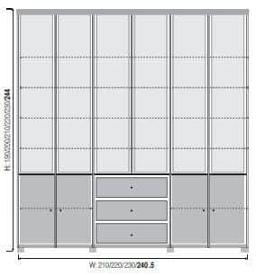 מחולק ל-6 דלתות זכוכית בחלק העליון , 4 דלתות בחלק התחתון ו-3 מגירות